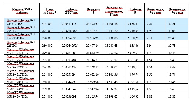 - Bitmain Antminer S21 XP 270TH/s — 2,27% в месяц / 27,21% в год