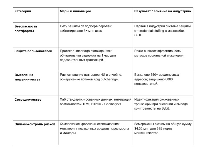 • Предотвращение мошенничества в IV квартале: из $500 млн подозрительных запросов на вывод Bybit успешно перехватила и сохранила $300 млн, защитив сбережения более 4000 пользователей.